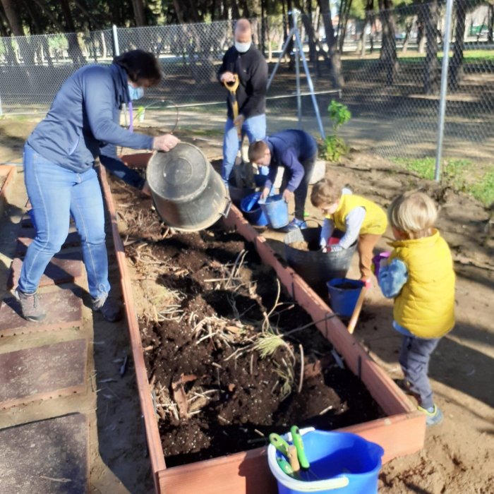 Nos introduciremos en la permacultura, la educación ambiental y el compostaje. En el huerto intentaremos reutilizar todos los materiales que estén a nuestra disposición para darles una segunda vida, residuos orgánicos domésticos para compostar, madera de palets para fabricar hoteles de insectos o cajas nido, botellas de plástico para letreros de plantas, etc...