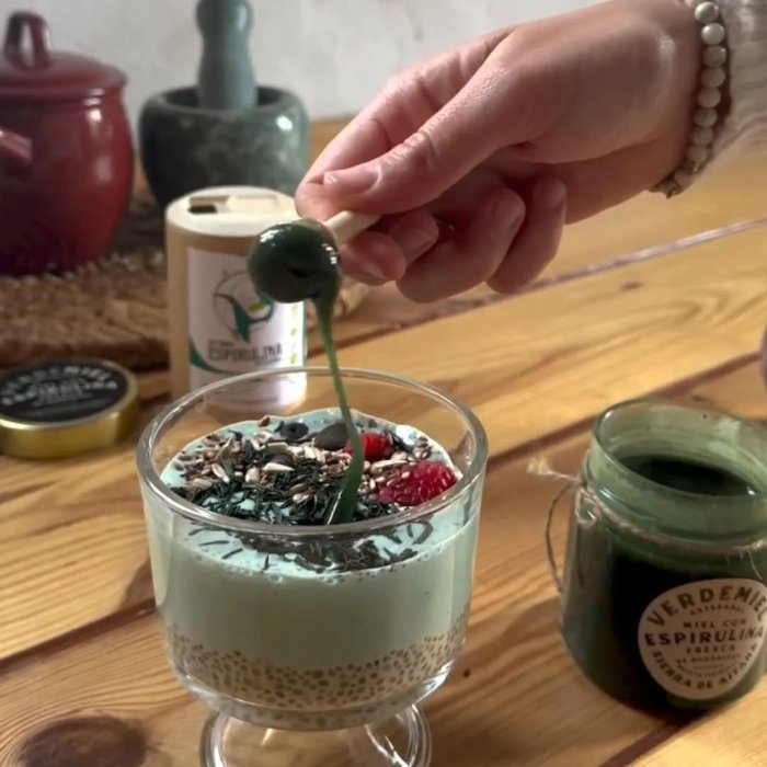 Cultivo artesanal de espirulina, un superalimento natural que fija CO₂ y genera oxígeno. Producida en condiciones sostenibles y controladas, aporta nutrición, innovación y esperanza para una alimentación más consciente y regenerativa.