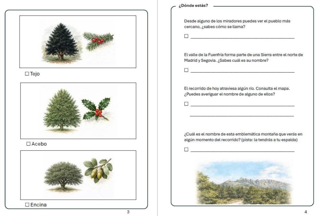 El recorrido también se puede hacer en familia. Cada ruta incluye un cuaderno imprimible con actividades para que los niños lo puedan rellenar por.el camino sin mirar a la pantalla