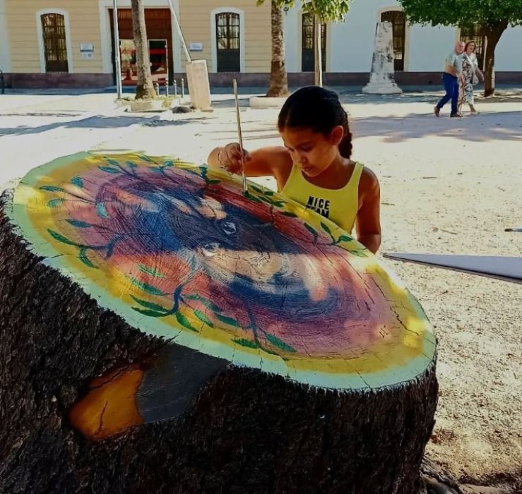 “Colores que Renacen” es una iniciativa participativa impulsada por la asociación Enarbolando Córdoba que busca dar una segunda vida simbólica a los árboles que han sido talados en la ciudad. A través de talleres comunitarios, vecinos, escolares y colectivos sociales transforman los troncos que permanecen en calles y plazas en pequeñas esculturas urbanas cubriéndolos con tapones de plástico reciclados.