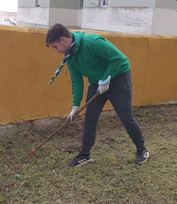Como grupo scout Al-Hadra, decidimos unirnos para ayudar a nuestro párroco a cuidar y mejorar el jardín de la parroquia. Desde el primer momento trabajamos con ilusión, organizándonos en equipos para limpiar, podar y preparar la tierra. Mientras unos quitábamos malas hierbas, otros removíamos el suelo y plantábamos nuevas flores y arbustos. Aprendimos a usar herramientas con responsabilidad y a respetar el entorno natural que nos rodea.