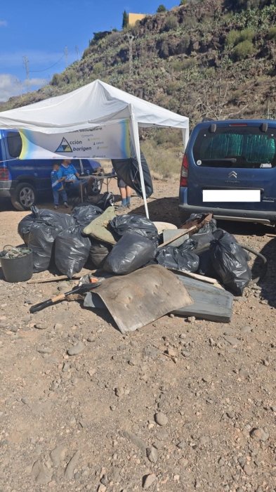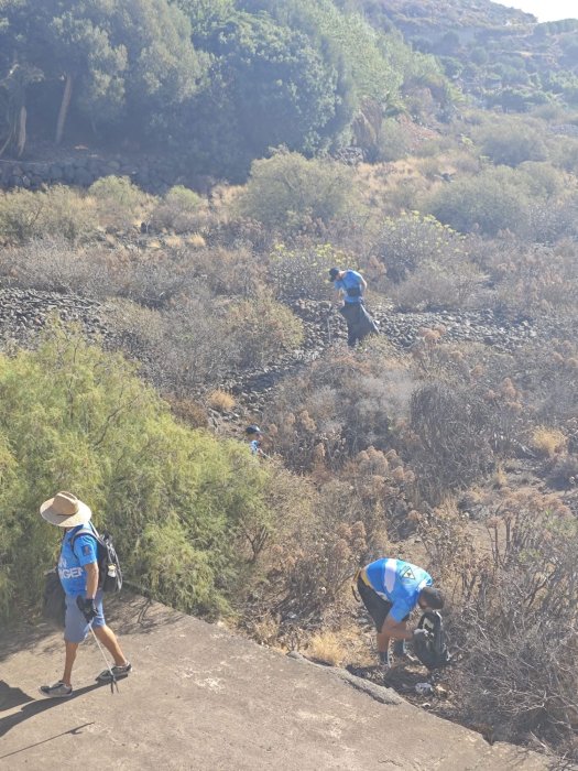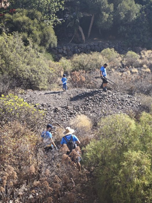 Voluntarios realizan batidas de limpieza en el barranco de Guayadeque para retirar residuos que acabarían en el mar. La acción protege la biodiversidad, previene la contaminación y promueve el cuidado activo del entorno natural y sus ecosistemas.