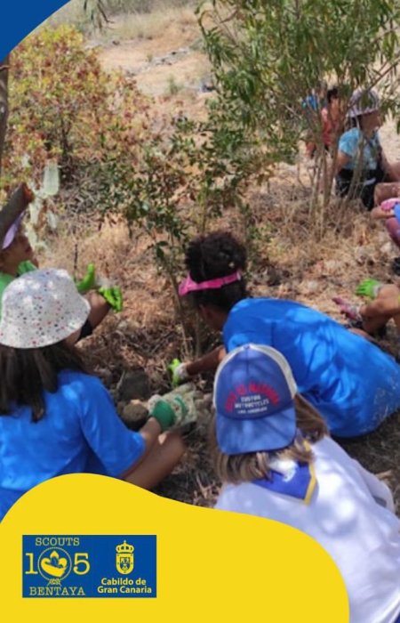 Jóvenes scouts y sus familias se unen para eliminar especies invasoras en el terreno de Arucas, recuperando ecosistemas y fomentando la biodiversidad. Con el apoyo de Sagulpa, promueven la cooperación, la educación ambiental y el compromiso activo con la naturaleza.