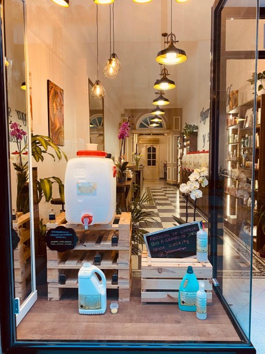 En nuestra tienda ofrecemos productos de limpieza ecológicos que se venden a granel, permitiendo que las personas reutilicen sus propios envases y reduzcan significativamente el consumo de plástico en el día a día.