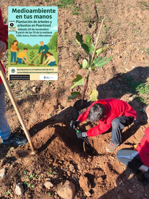 También plantamos diferentes arbustos y plantas resistentes a la sequía que contribuyen a fijar el suelo en zonas de ladera, ayudando a sujetar la tierra y a prevenir la erosión. Estas plantas favorecen la regeneración del terreno y contribuyen a crear pequeños espacios verdes que benefician tanto a la flora como a la fauna local.