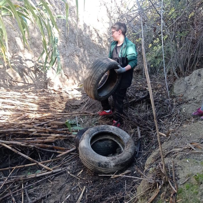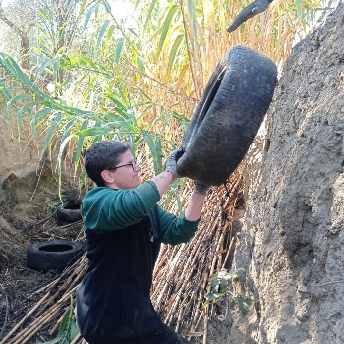 En un barranco de cañas, donde anidan diversar aves, se consiguieron sacar 197 neumáticos que fueron depositados en este entorno natural.