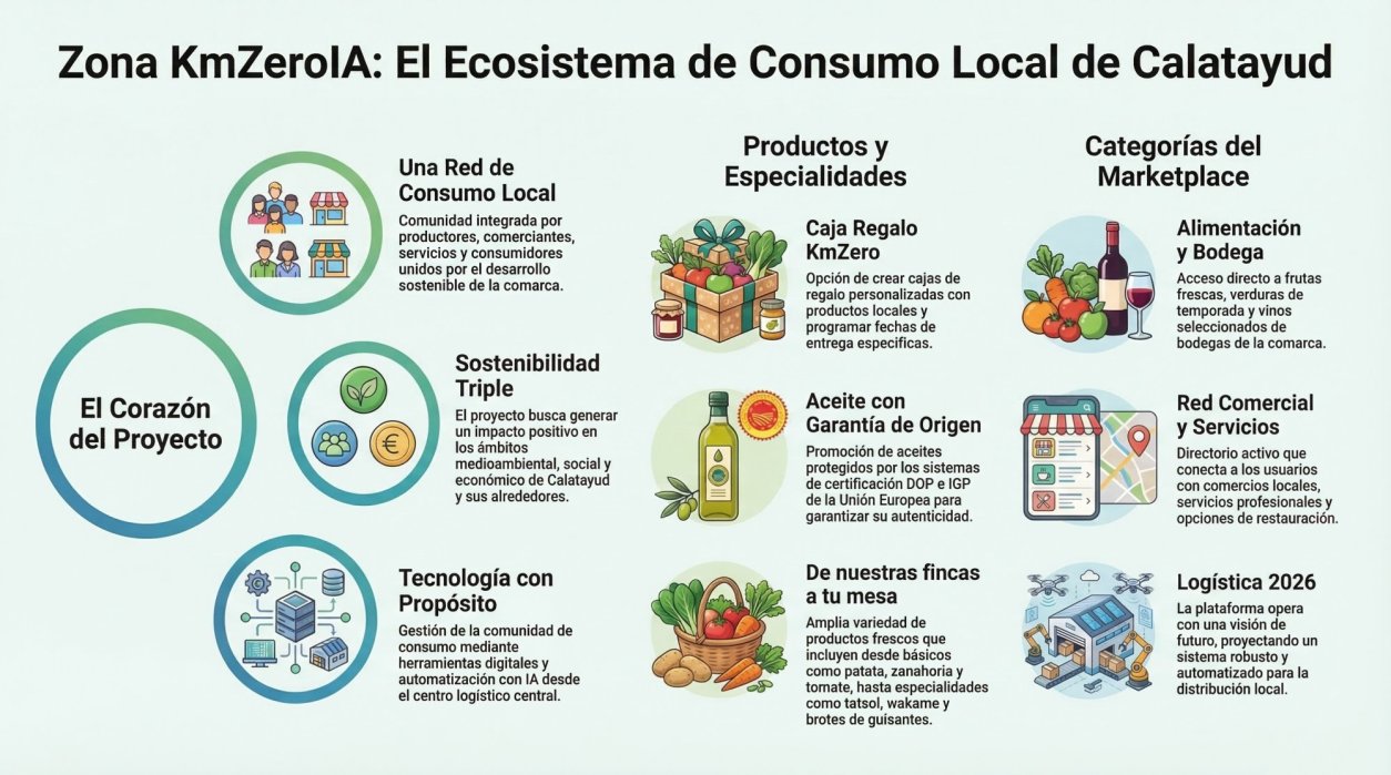 Zona KmZeroIA es un ecosistema digital integral diseñado para impulsar la transformación digital de municipios pequeños y comarcas rurales, conectando de forma inteligente a ayuntamientos, ciudadanía, comercios, productores locales y turistas mediante el uso de tecnología avanzada e inteligencia artificial, combinando canales digitales y puntos físicos de acceso público.